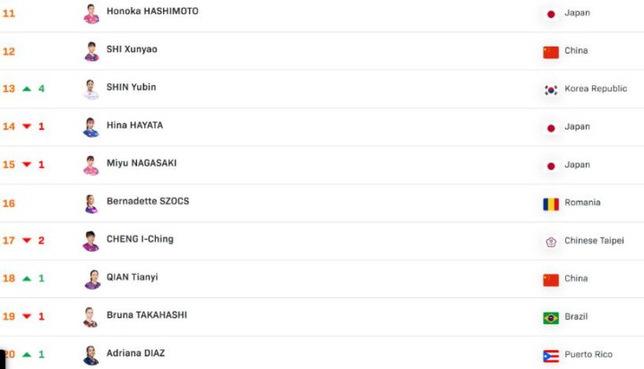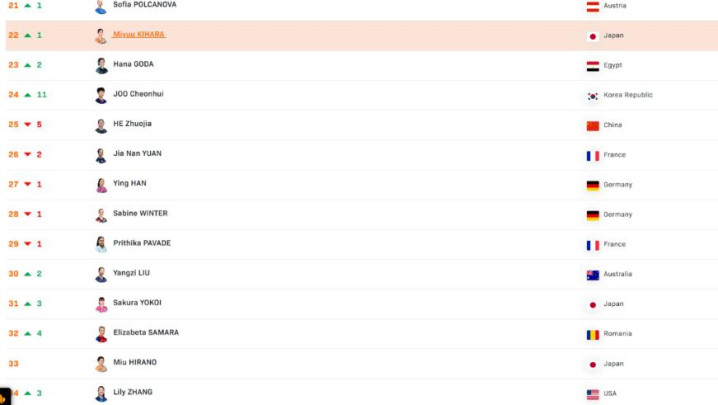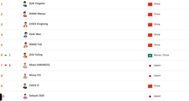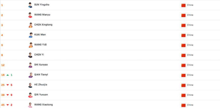 乒乓球女单世界排名,国乒大部分选手都比较稳定,外协球员的排名让人意外,尤其是日乒和韩乒,像韩国的归化球员朱芊曦、日本的张本美和都很优秀。