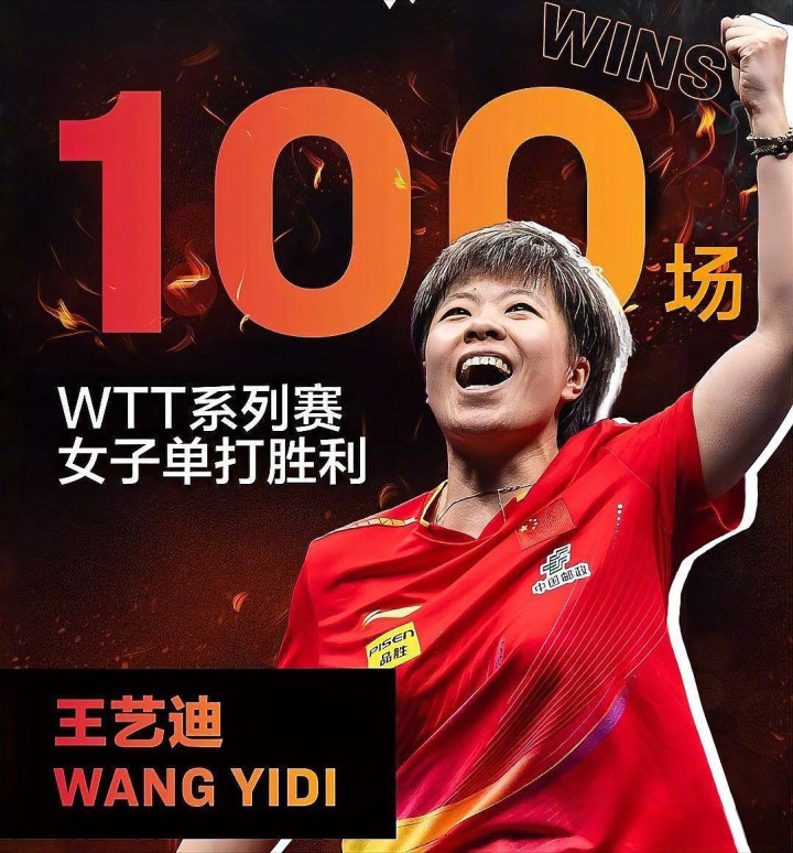 她刚拿了WTT系列赛第100场单打胜利,这可是实打实的战绩积累。